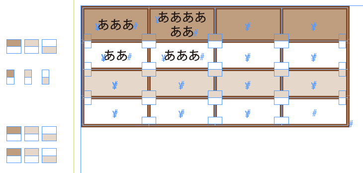 作り方としては、「非常に細い幅や高さの行・列を挿入する」「セルの罫線は使用せず、段落の囲み罫や段落の境界線を使用する」「白のみのグラデーション、および新しく線種を作成してセル罫線に適用」など面白い案が色々出ているので是非このスレッドを見てください。勉強になります。白のオーバープリントは指定できないんだけど、白のみのグラデーションではオーバープリントが可能になるという、バグっぽい挙動を初めて知りました。