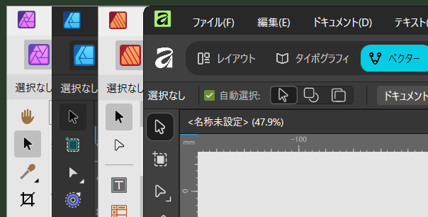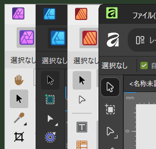 アドビアプリケーションとの比較でいうと、Affinityの移動ツールは