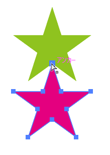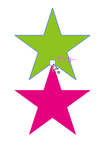 ですから、下の星形を1回クリックして選択状態にし、その状態でアンカーポイントをクリックします。