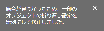 この挙動にも条件があって、フレックスアイテムが1列であること(つまり折り返しがない)が条件です。折り返しを指定していた場合は次のメッセージが表示されて折り返しが無効化されます。