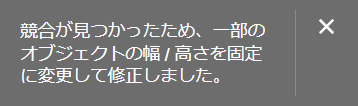 ただしこの挙動には条件があって、フレックスコンテナの大きさが固定でなければなりません(自動だと理論上どこまでも伸びてしまう)。もしフレックスコンテナの大きさが自動だった場合は次のメッセージが表示されて固定に変更されます。
